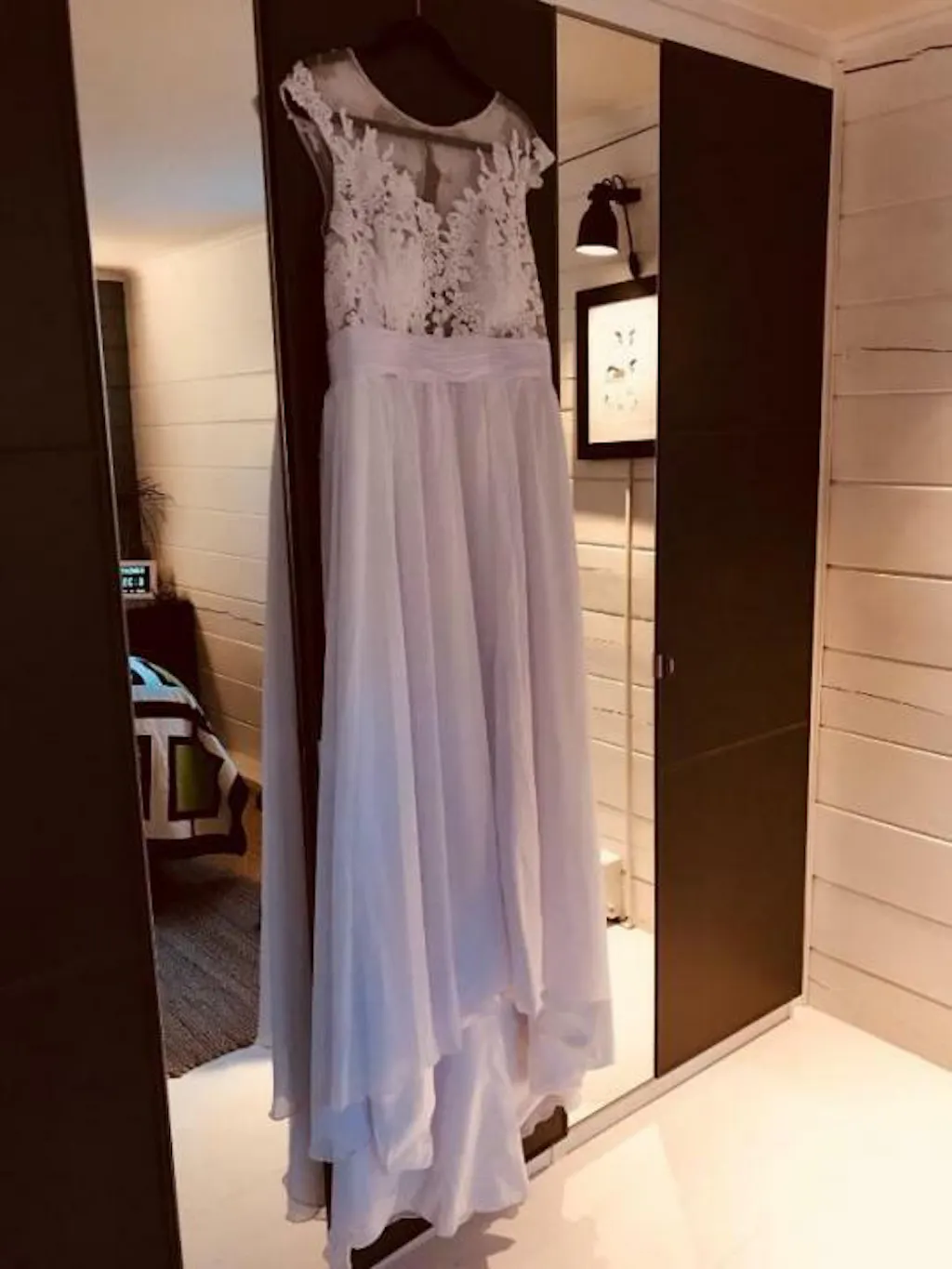 This dress turned out to be far more beautiful and high quality than I had expected! I am quite short so I had to make some alterations to the length and the zipper back but I will be wearing it on my wedding day!